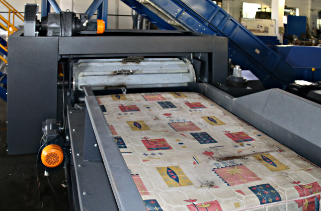 3E機械WT系列床墊撕碎機,可以根據(jù)物料、產(chǎn)量及出料尺寸等為客戶提供一站式技術(shù)解決方案,經(jīng)處理后的物料可直接回收循環(huán)再利用或按需求作進一步細化處理。該系列撕碎機特別設(shè)計有喂料滾筒裝置來控制喂料量,保證刀輥工作順暢,產(chǎn)量大,能效高;控制采用西門子編程系統(tǒng),可自動控制設(shè)備運作,設(shè)有啟動、停止、反轉(zhuǎn)及超載自動反轉(zhuǎn)控制功能,具有低速、大扭矩,低噪音等特點。