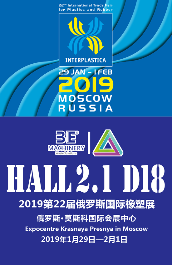 INTERPLASTICA 2019俄羅斯橡塑展將于1月29日-2月1日在莫斯科國際會展中心開展,3E機械將在2.1D18展位中歡迎來自業(yè)界、客戶與同行的朋友們,共享2019東歐橡塑行業(yè)的國際商務聯(lián)盟。3E機械真誠的邀請各方貴賓、行業(yè)新貴在這相聚,共同探索,攜手共進!