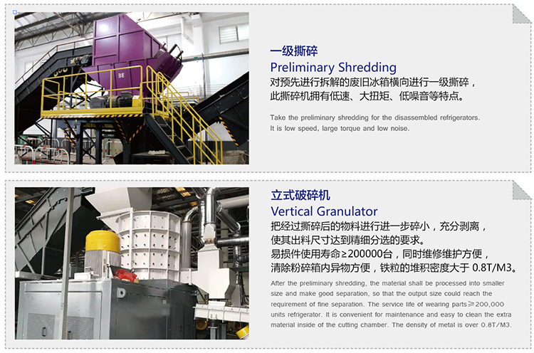 廢冰箱拆解回收產(chǎn)能:50-60臺(tái)/小時(shí)