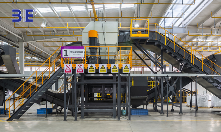 雙驅(qū)動,低速,大扭矩,將輪胎撕碎成50-100mm大小的膠塊,方便后續(xù)機(jī)器處理。