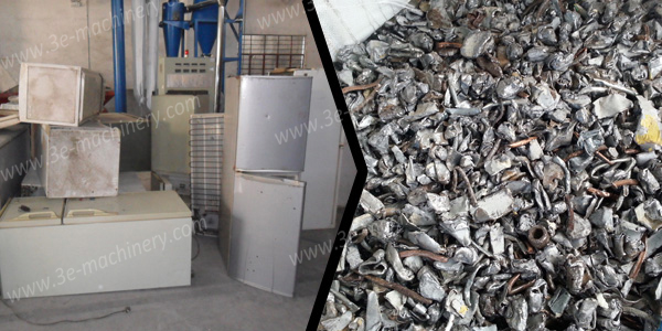 3E機(jī)械廢舊冰箱破碎回收線主要是用于回收被抽取氟利昂后并拆除壓縮機(jī)的冰箱,主要采用