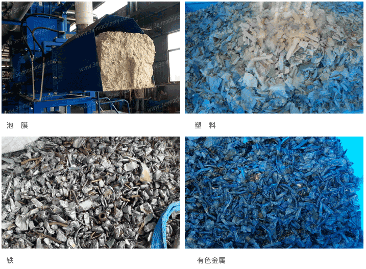 3)再用特別設(shè)計的磁選設(shè)備有效地把鐵、銅等金屬有效分離出來,而渦電流分選設(shè)備則把有色金屬和非金屬進(jìn)行分離;