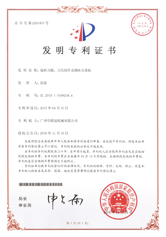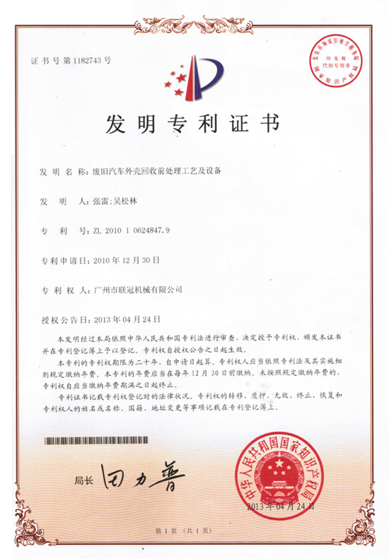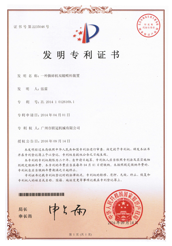 3E廣州聯(lián)冠機(jī)械的技術(shù)研發(fā)小組憑借多年的研發(fā)與積累,從簡(jiǎn)單的“逆向創(chuàng)新”——外觀完善并獲得多項(xiàng)外觀設(shè)計(jì)專利;到核心技術(shù)的不斷探索、攻關(guān)——“正向創(chuàng)新”,妥妥的國(guó)家發(fā)明專利3項(xiàng)已寫入公司戰(zhàn)績(jī),分別是旋轉(zhuǎn)刀輥、刀具組件及鋼絲分離機(jī)(ZL201510169218.4),撕碎機(jī)雙輥喂料裝置(ZL201410126169.1),廢舊汽車外殼回收前處理工藝及設(shè)備(ZL201010624847.9),另外還有20余項(xiàng)發(fā)明專利正在申報(bào)中。