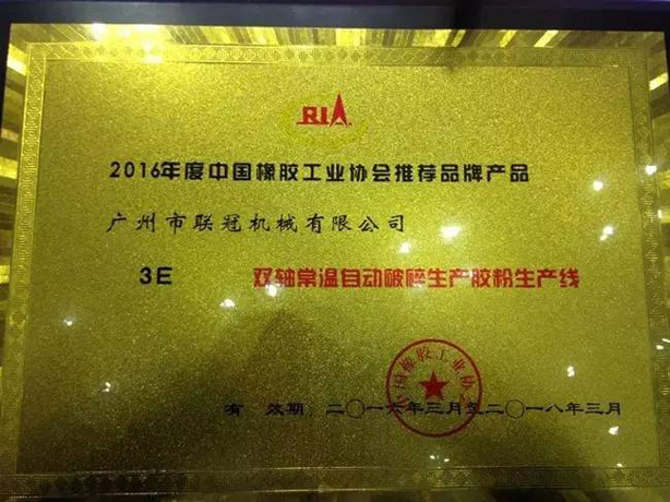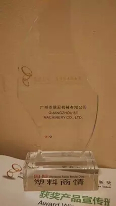 2016.3 憑借自主研發(fā)的薄膜擠干團(tuán)粒機(jī)榮獲2016塑料行業(yè)榮格技術(shù)創(chuàng)新獎(jiǎng)。