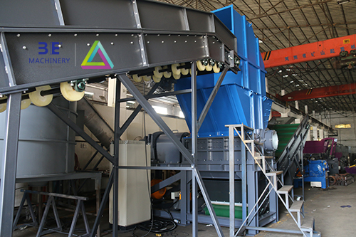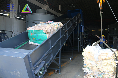 該設(shè)備適用于各種打包或成捆的農(nóng)膜,噸袋等的預(yù)碎。 通常用于打包薄膜類回收解決方案的前端。 針對(duì)泥沙含量大的物料設(shè)計(jì),能一次性將整包物料打散并剪切成均勻的尺寸,便于對(duì)泥沙進(jìn)行預(yù)處理掉,減少后端主機(jī)的磨損。