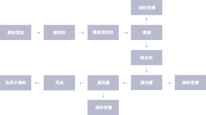 生產(chǎn)線主要由特制的瓶片式撕碎機(jī)/破碎機(jī),螺旋上料機(jī),預(yù)洗機(jī),脫標(biāo)簽機(jī),立式脫水機(jī), 干燥器等設(shè)備組成,整套設(shè)備自動(dòng)化程度高, 能耗低,效率高,清洗干凈等特點(diǎn),有效地把廢舊PET瓶變成可再利用的PET原料。運(yùn)用回收材料生產(chǎn)高品質(zhì)產(chǎn)品,用于銷售或者拉絲,造粒吹瓶。 |