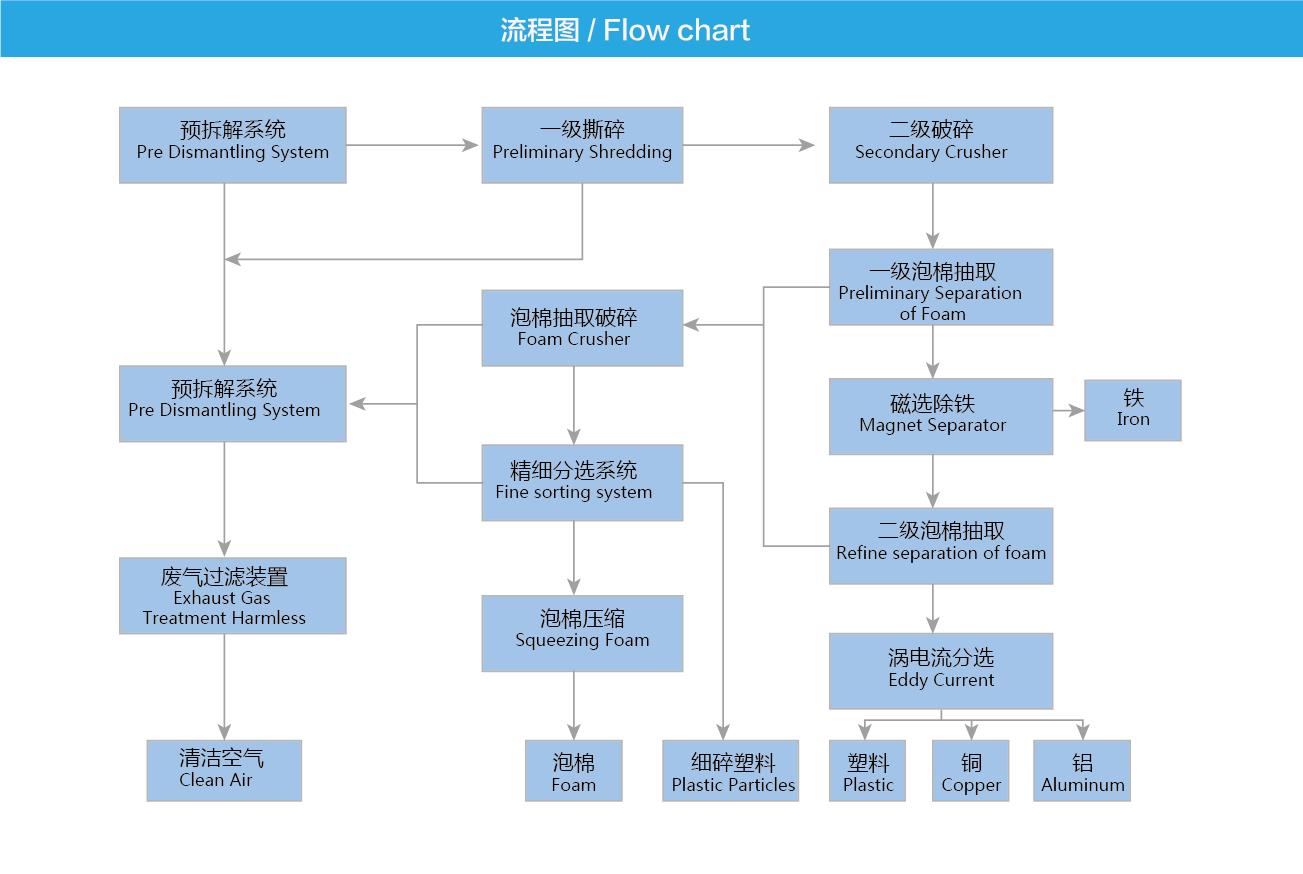 設(shè)備參數(shù) 廢冰箱拆解回收產(chǎn)能:50-60臺(tái)/小時(shí) 80-100臺(tái)/小時(shí)。 物料分選效果: