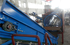 礦石篩(通過物料尺寸進行分離)干燥后的廢料被送進礦石篩里。細小的物料(不帶可燃物料)例如砂石,玻璃等會被分離出來。礦石篩長8米,直徑2.2米。當礦石篩開始轉動,里面的物料會向前滑下來。顆粒物料的尺寸比規(guī)定尺寸(大概20mm)還要小,會穿過篩網孔而被篩選出來。不含可燃物料的東西都會被收集起來,然后通過鏟斗運走。含可燃物料的那些會從礦石篩另一端出來然后進行下一步的處理。 |