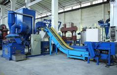 渦流散料機(jī)廢舊電線電纜經(jīng)過破碎機(jī)破碎后得到的物料顆粒,事先通過氣流 分選出粗銅,其余物料送入此機(jī)中進(jìn)一步摩擦、搓揉,銅與銅表 層的塑膠分離徹底,并細(xì)化塑料及使細(xì)銅絲成粒,以利于后序的 分選。此設(shè)備相對(duì)于現(xiàn)有的破碎機(jī)能耗更低。 |